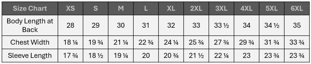XS    Small    Medium    Large    XL    2XL    3XL   4XL    5XL   6XL
